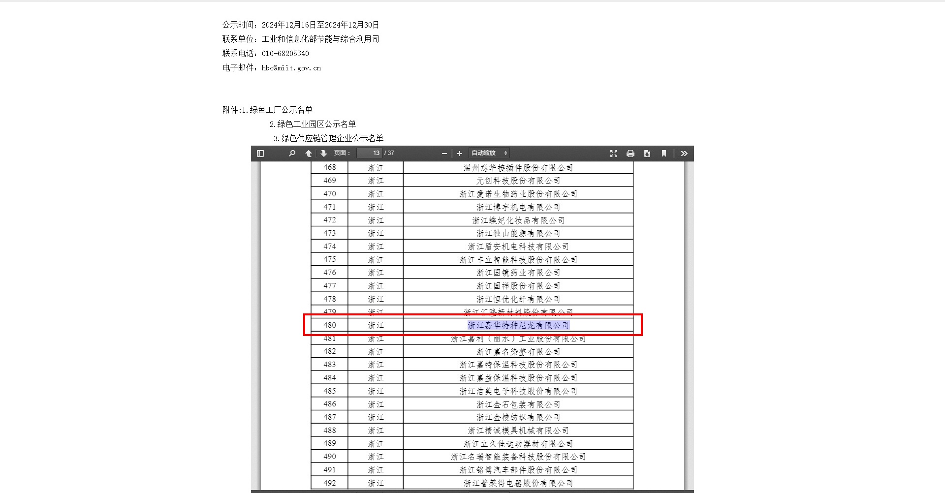 近日,工業和信息化部節能與綜合利用司發布《2024年度綠色制造名單公示》,集團子公司浙江嘉華特種尼龍有限公司榮獲國家級綠色工廠,繼2022年1月浙江臺華新材料集團股份有限公司榮獲國家級綠色工廠之后,集團內又一個子公司獲得此殊榮。